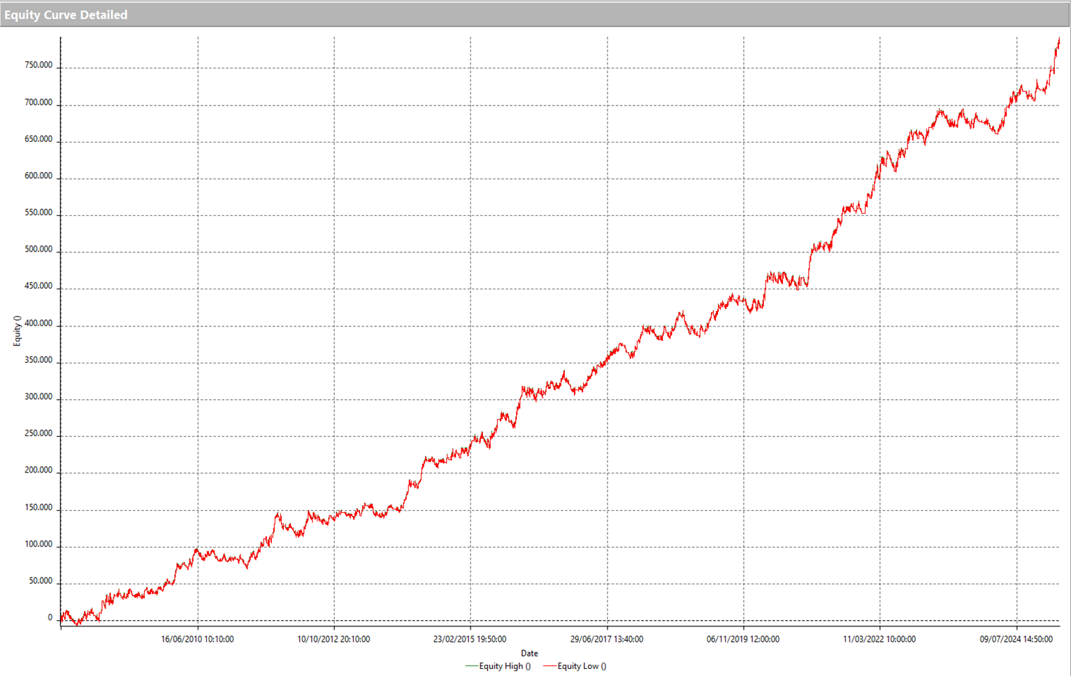 Figure 4 – Equity line of the multiday Trend-Following strategy on S&P 500 Futures (ES).
