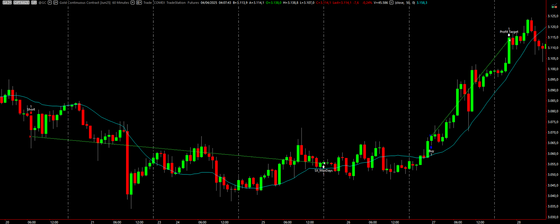 This is an interesting Trend-Following strategy on Gold futures that operates on a 60-minute time frame.