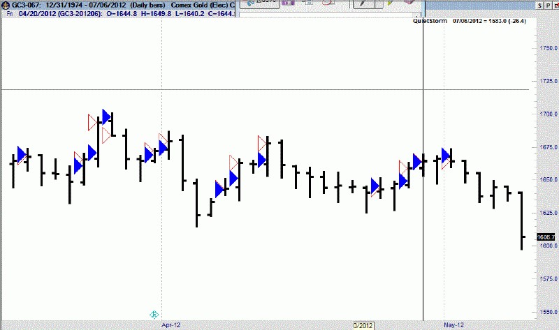 Fig. 2: Examples on Gold Future, trades are opened at breakout of previous high and closed at the end of the day