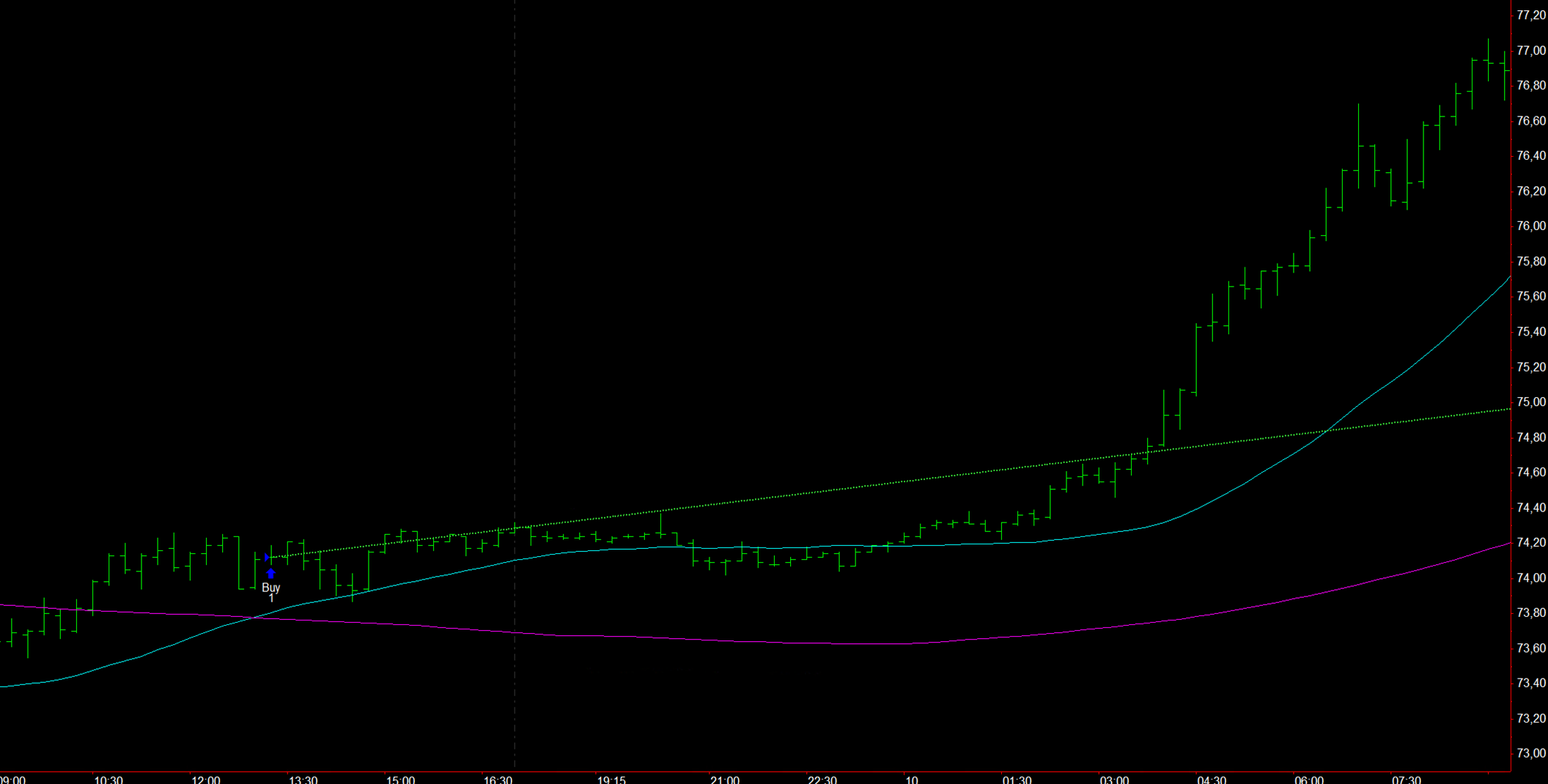 Figure 1 – Example of a long entry following the moving average crossover.