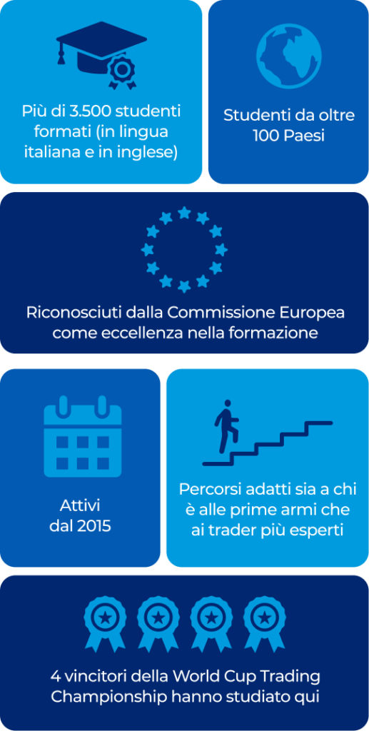 Inoltre, non ti abbandoniamo a te stesso (o te stessa): il supporto 1 a 1 che offriamo ai nostri studenti serve proprio a evitare gli errori tipici di chi studia ma poi non riesce ad applicare, e a potenziare nel tempo le tue capacità come trader.