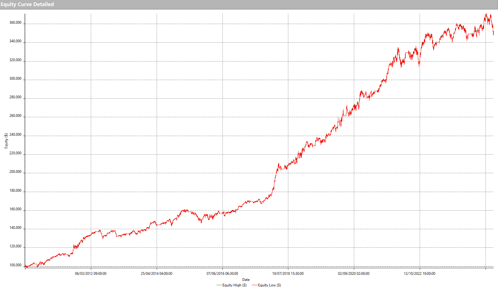Figura 4 – Equity line della strategia swing sull’S&P 500 (ES).