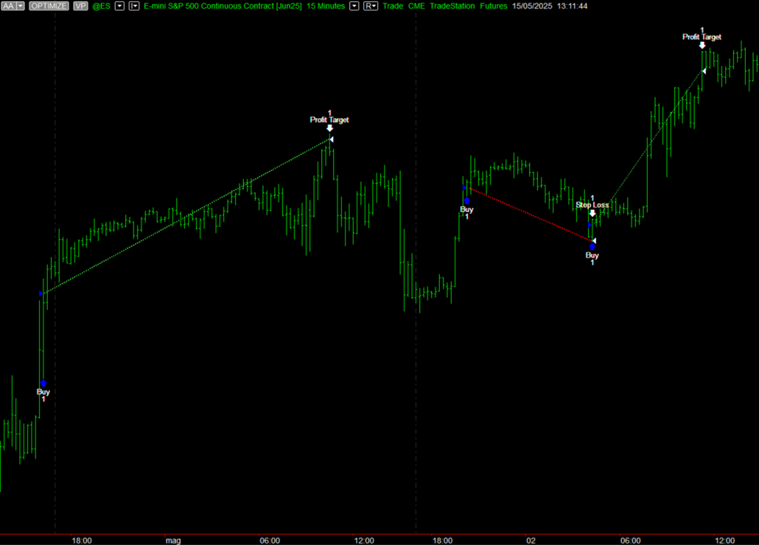 Essendo un sistema multiday potrà restare in posizione per diverse sessioni, chiudendo attraverso i classici Stop Loss o Profit Target oppure attraverso una gestione piuttosto evoluta del trade tramite breakeven e trailing profit.