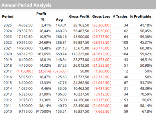 Anche per questa strategia abbiamo avuto delle conferme positive nel 2025, un anno sicuramente non facile soprattutto per sistemi come questo che lavorano in controtrend.