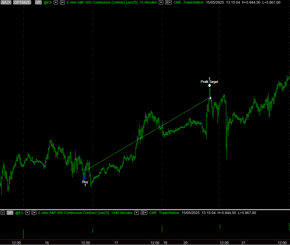 Figura 5 – Esempio di trade eseguito dalla strategia reversal multiday sul future dell’S&P 500.