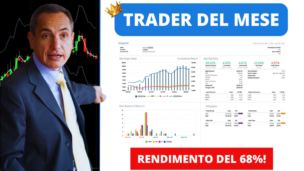 Nella comunità della Unger Academy®, ogni mese celebriamo i risultati concreti dei nostri studenti. Ma alcune storie meritano più spazio di altre. È il caso di Maurizio, nominato per la seconda volta “Trader del Mese”, che nel solo aprile 2025 ha guadagnato 39.978€, corrispondenti ad un fantastico ritorno del +68,42% sul suo capitale iniziale, a fronte di un drawdown massimo del 7,91%.