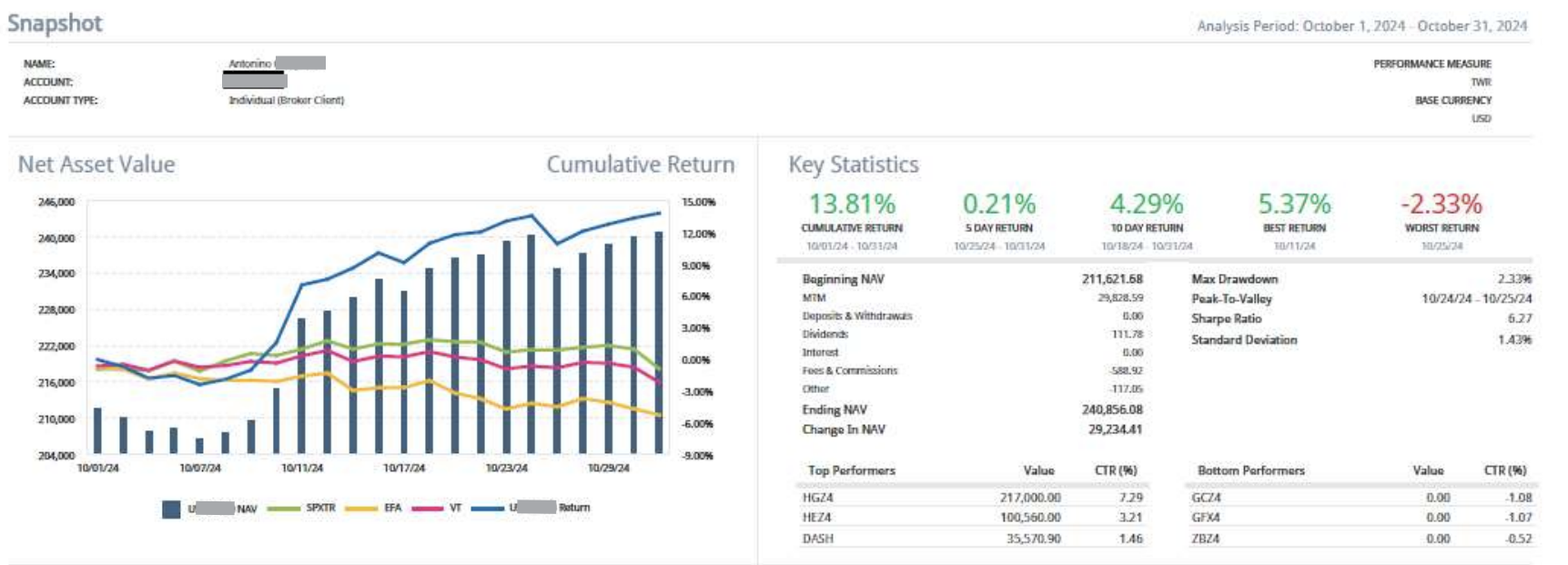 Trader del Mese (ottobre 2024): Antonino guadagna oltre 29.000$ con un ritorno del 14% e appena il 2,3% di drawdown