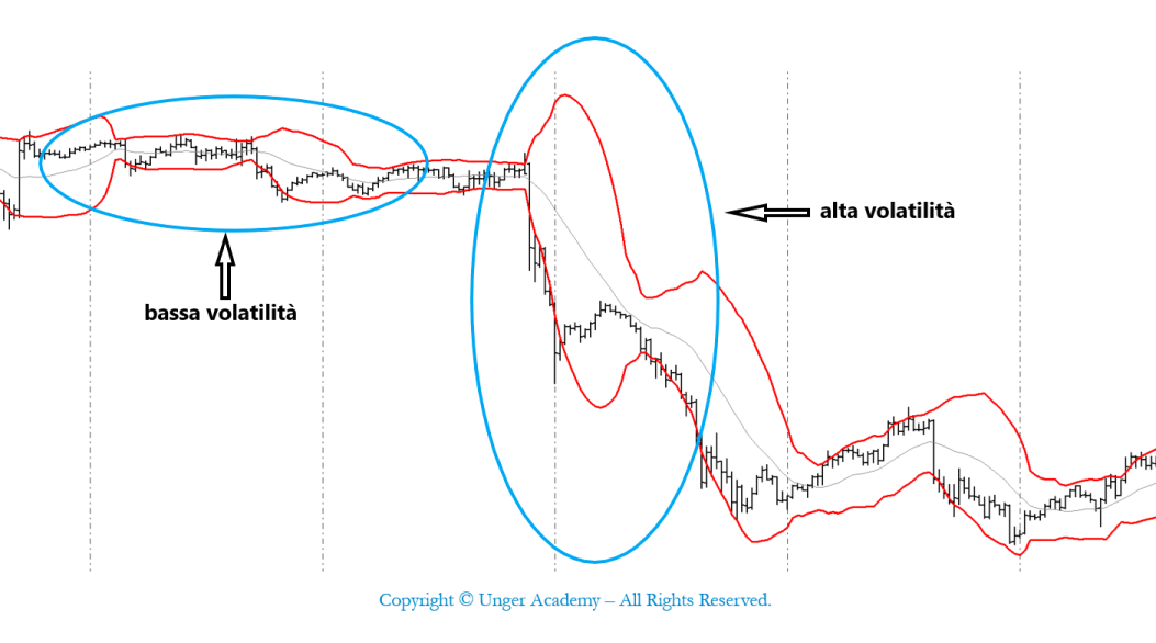 La volatilità misura esattamente le fluttuazioni dei prezzi rispetto al loro valore medio: maggiore è l’ampiezza e l’intensità dell’oscillazione e più alta sarà la volatilità.