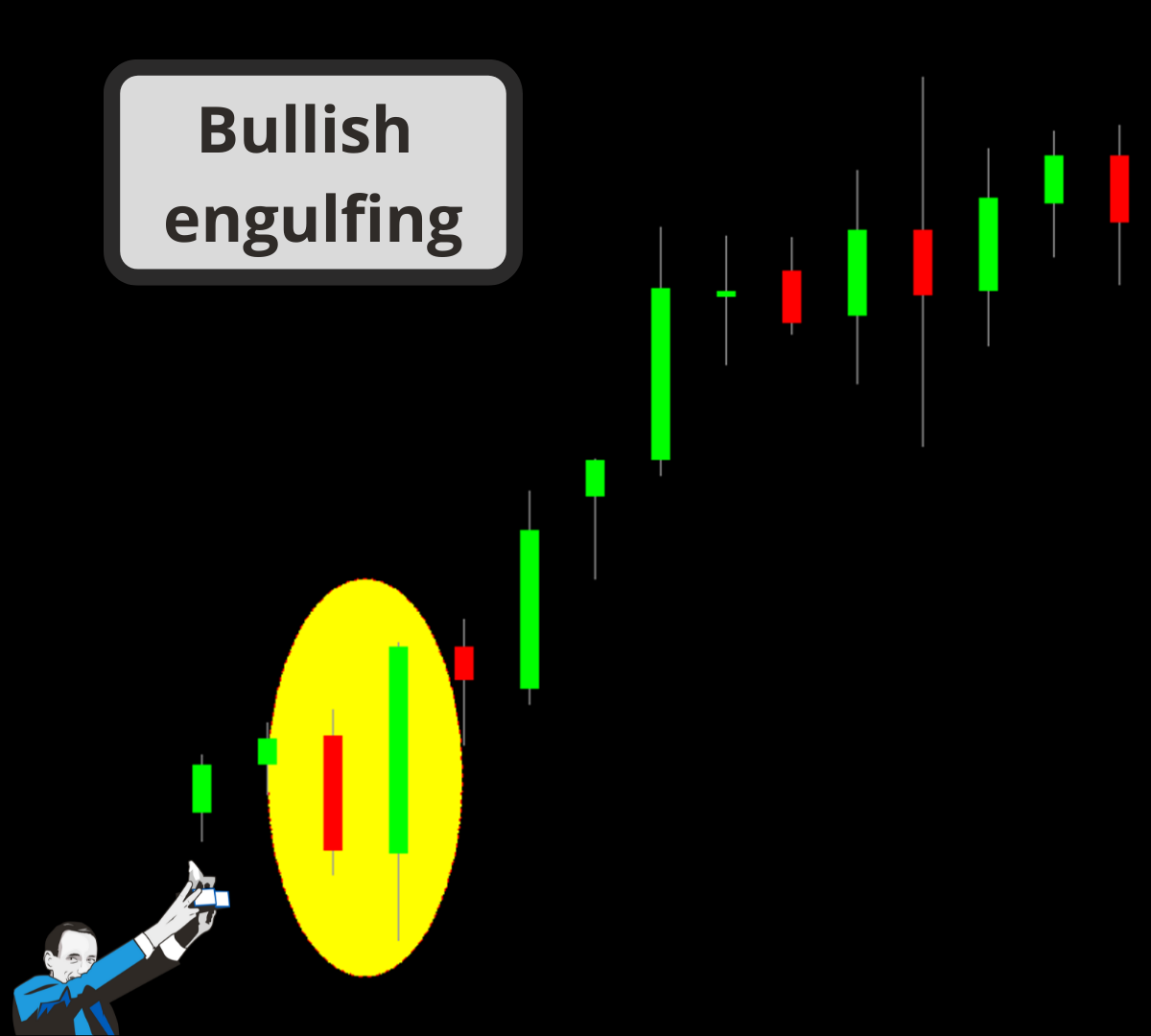 The word “engulf” may help you understand the concept: the second candlestick is indeed so large that it can swallow the first candlestick in its entirety.