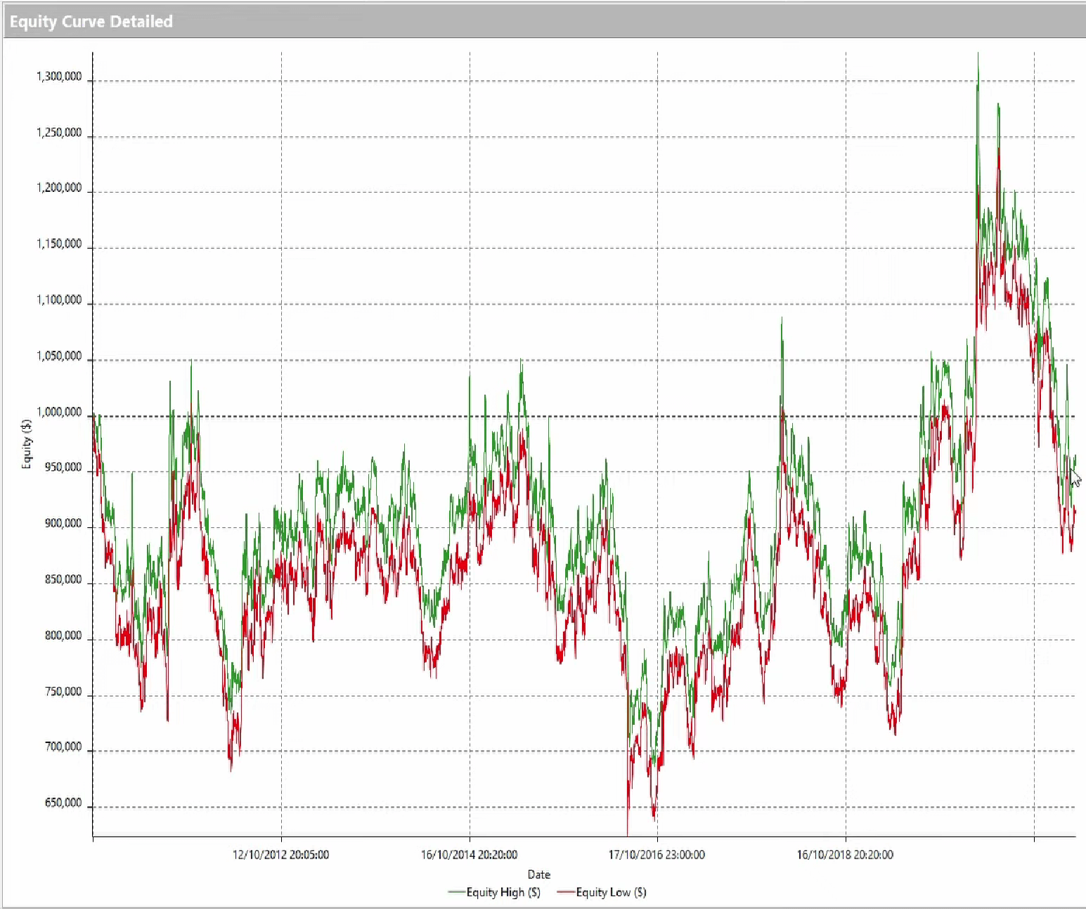 We conclude with a comparison of the equity line of the basic system and that of the system after incorporating some of the adjustments listed above: